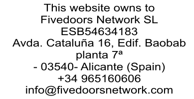 Tiene derecho a conocer, modificar, borrar y portar la información que almacenamos sobre usted. En caso necesario, puede ejercer sus derechos de acceso, rectificación, cancelación y oposición, dirigiéndose por escrito a Fivedoors Network S.L, domiciliada en la calle Avda. Cataluña 16, planta 7 - Alicante o contactándonos mediante los enlaces que aparecen en la parte de abajo de todos los correos enviados: eliminar subscripción | modificar datos de la subscripción . Ponemos en su conocimiento que sus datos personales no serán segmentados ni utilizados con otros fines comerciales que los expuestos. El usuario garantiza que los datos personales facilitados a través de nuestra página web son veraces y se hace responsable de comunicar cualquier modificación de los mismos para que, en todo momento respondan a su situación actual. Por todo ello entenderemos que en el supuesto de facilitarnos sus datos nos autorizan expresamente para realizar el tratamiento de sus datos conforme a lo descrito anteriormente. Ya que por regla general, esta información nunca incluye tu nombre o un alias que permitan identificarte, y tan sólo registramos un e-mail en nuestro boletín (al que puedes desuscribirte automáticamente), cualquier solicitud de acceso a tu datos puede estar sujeta a una cuota, para cubrir nuestros gastos derivados de intentar rastrear determinados datos dificilmente asociables a una persona concreta.